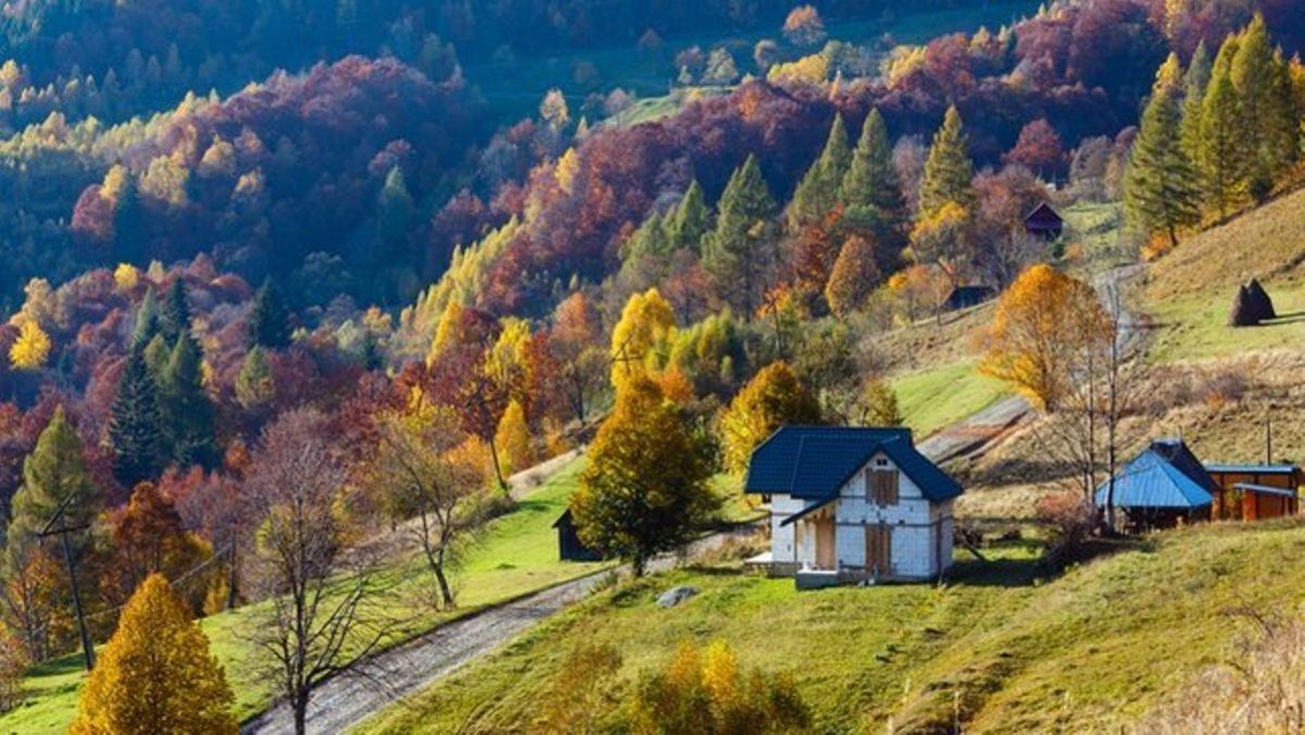 Тёплыми солнечными лучами сквозь жёлтые, зелёные, багровые листья высоких деревьев. Тонкими, серебряными ниточками паутинками, осенним дождём. Цветными, радужными домиками. Бесконечным синим небом и жёлтыми подсолнухами. Цветущими астрами и хризантемами. Быстрой горной рекой. Вольной птицей беркут. С табунами лошадей и ветром наперегонки. Тонким звуком тающего звона белоснежных храмов. Открытыми калитками, нарядными клумбами и садами. Веселым смехом детей. Ароматным запахом свежеиспеченного хлеба. Дорога в Карпатах к близкому другу на Украине …