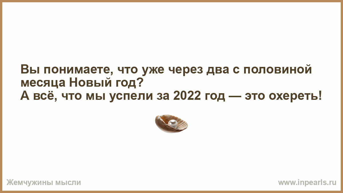 Вы понимаете, что уже через два с половиной месяца Новый год? А всё, что мы успели за 2022 год — это охереть!