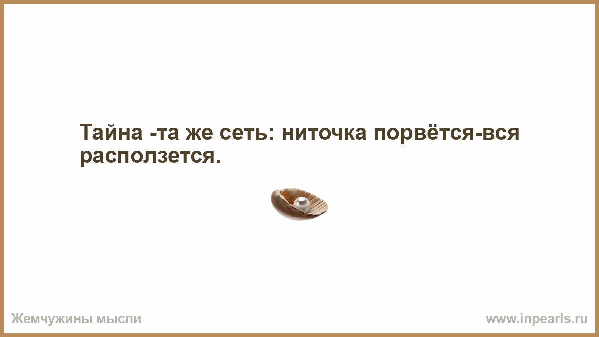 Тайна -та же сеть: ниточка порвётся-вся расползется.