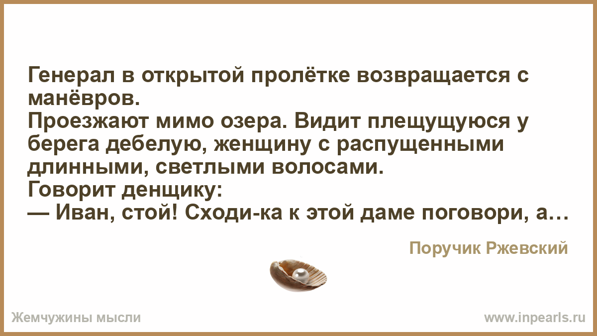 — Иван, стой! Сходи-ка к этой даме поговори, а не согласится ли она отужинать со мной, винишки-картишки, туда-сюда.