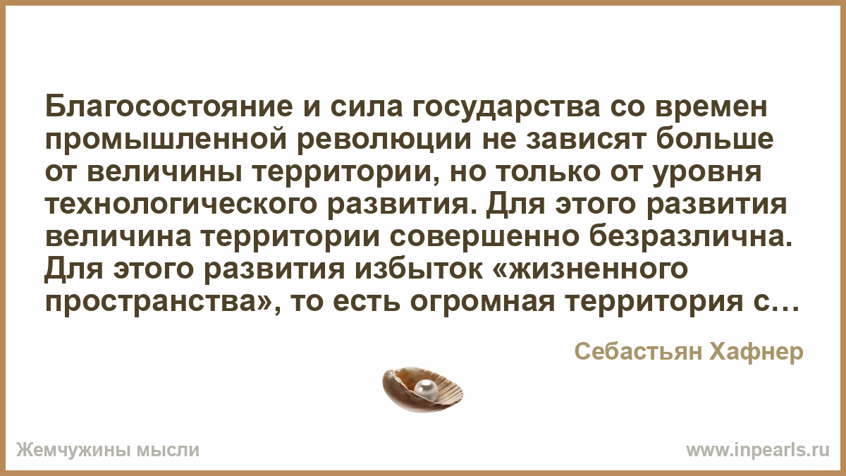 Благосостояние и сила государства со времен промышленной революции не зависят больше от величины территории, но только от уровня технологического развития. Для этого развития величина территории совершенно безразлична.