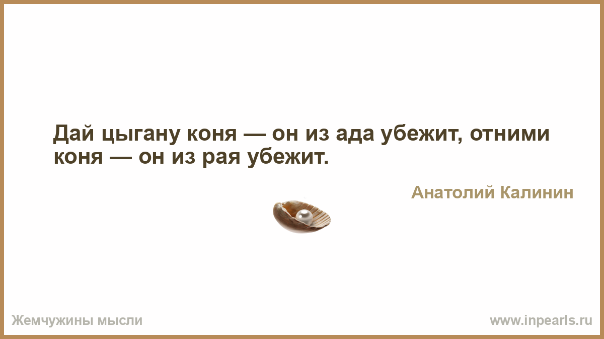 Дай цыгану коня — он из ада убежит, отними коня — он из рая убежит.
