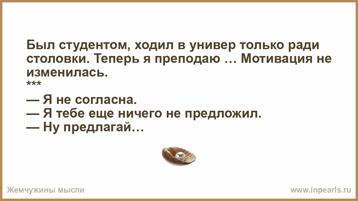 Был студентом, ходил в универ только ради столовки. Теперь я преподаю … Мотивация не изменилась.