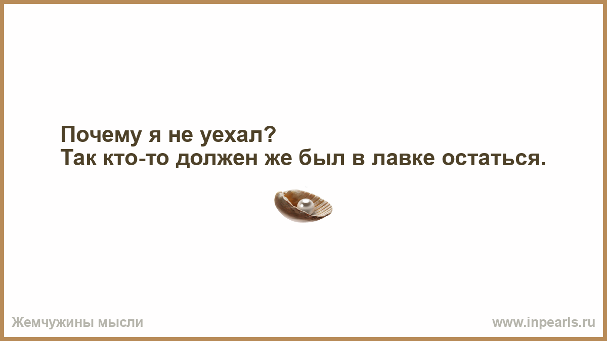 Почему я не уехал? Так кто-то должен же был в лавке остаться.