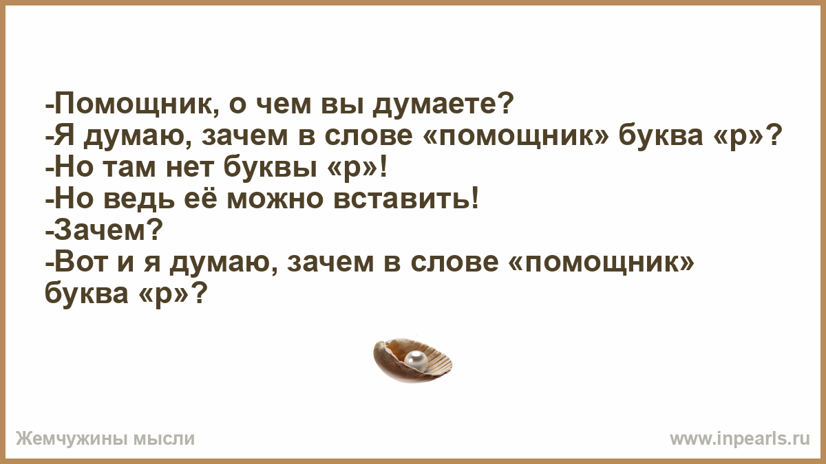 -Вот и я думаю, зачем в слове «помощник» буква «р»?