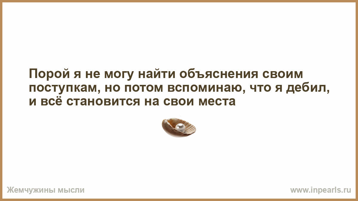 Порой я не могу найти объяснения своим поступкам, но потом вспоминаю, что я дебил, и всё становится на свои места