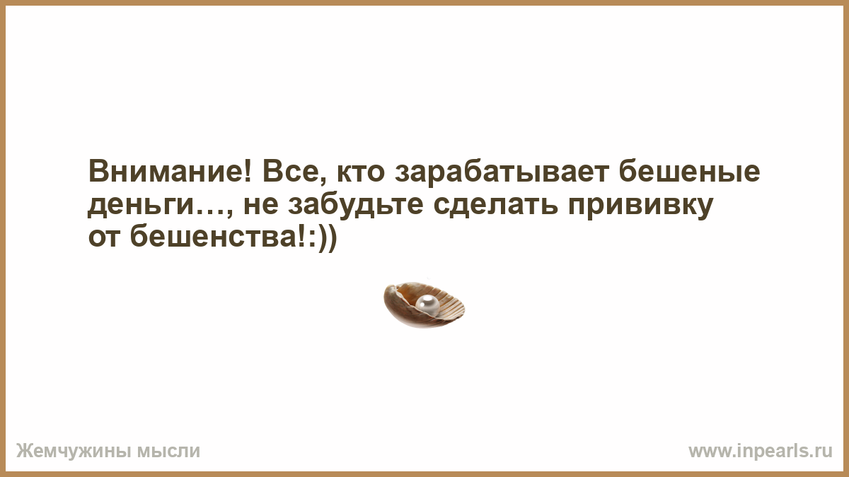 Внимание! Все, кто зарабатывает бешеные деньги…, не забудьте сделать прививку от бешенства!:))