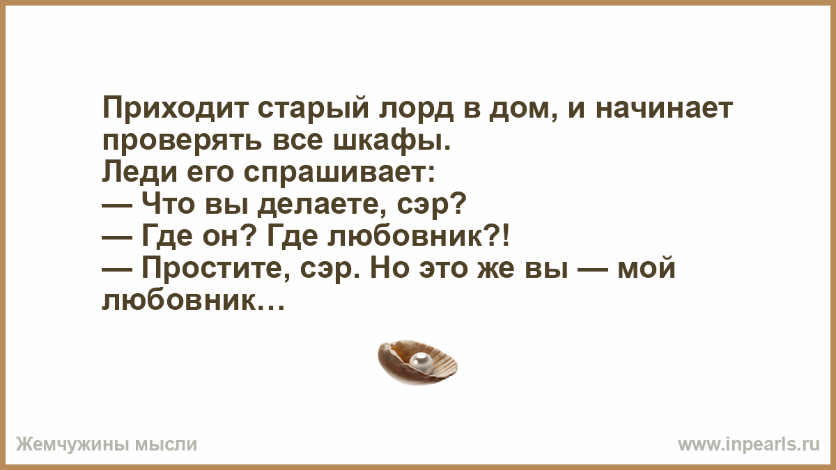 Приходит старый лорд в дом, и начинает проверять все шкафы.