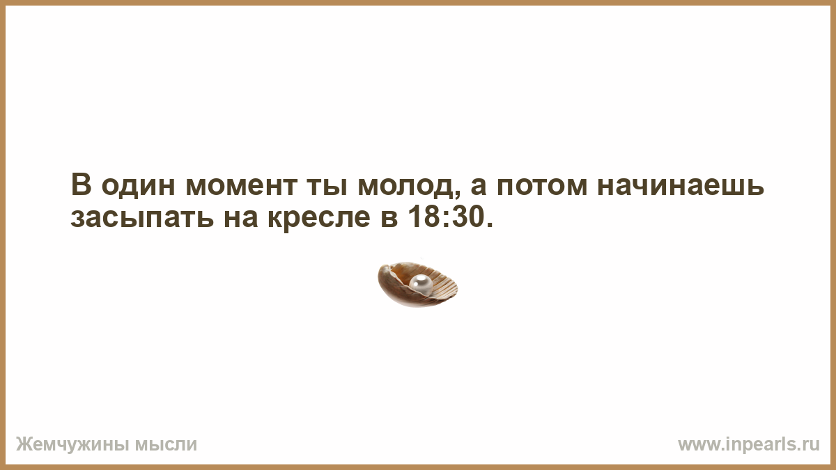 В один момент ты молод, а потом начинаешь засыпать на кресле в 18:30.