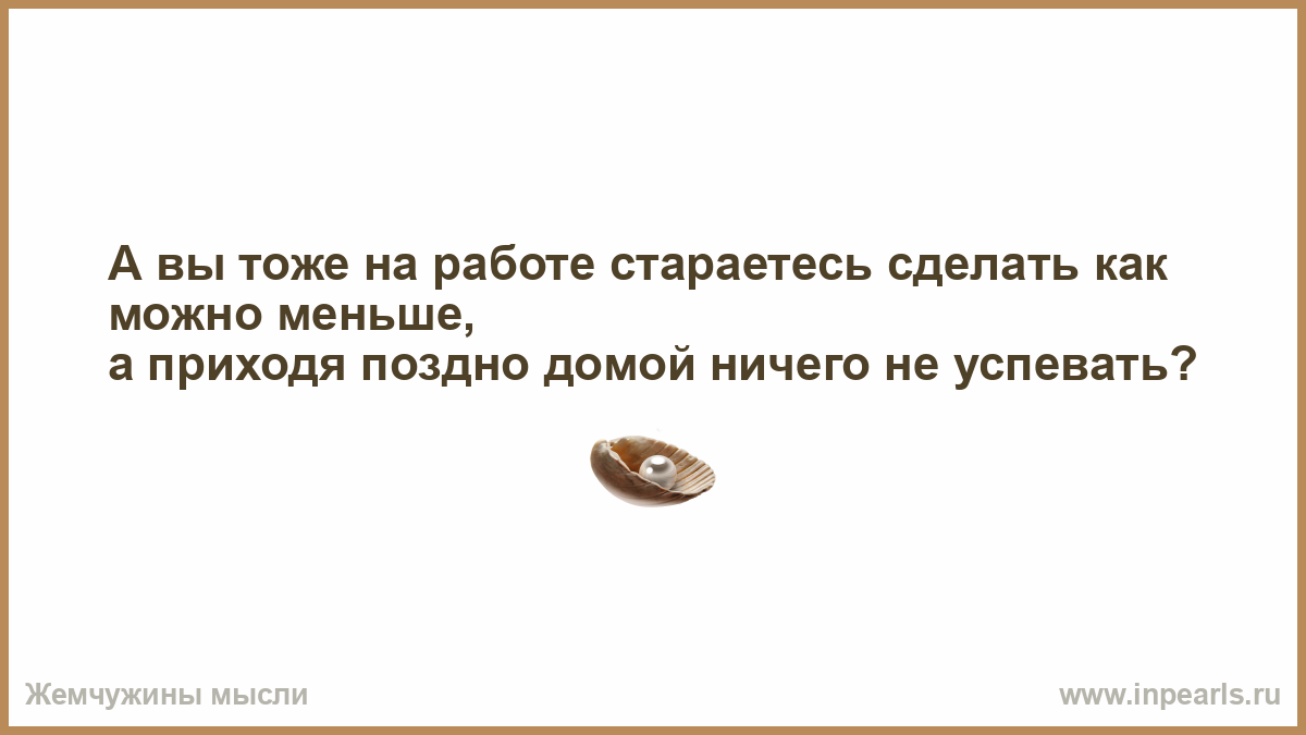 А вы тоже на работе стараетесь сделать как можно меньше, а приходя поздно домой ничего не успевать?
