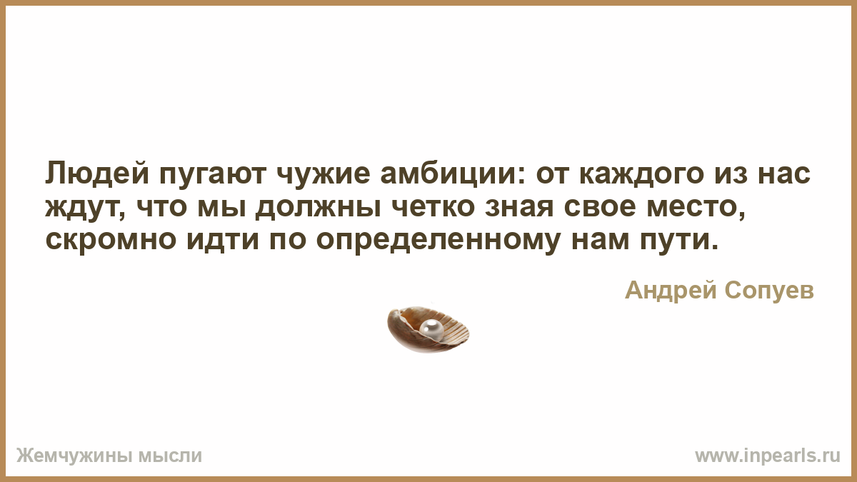 Людей пугают чужие амбиции: от каждого из нас ждут, что мы должны четко зная свое место, скромно идти по определенному нам пути.