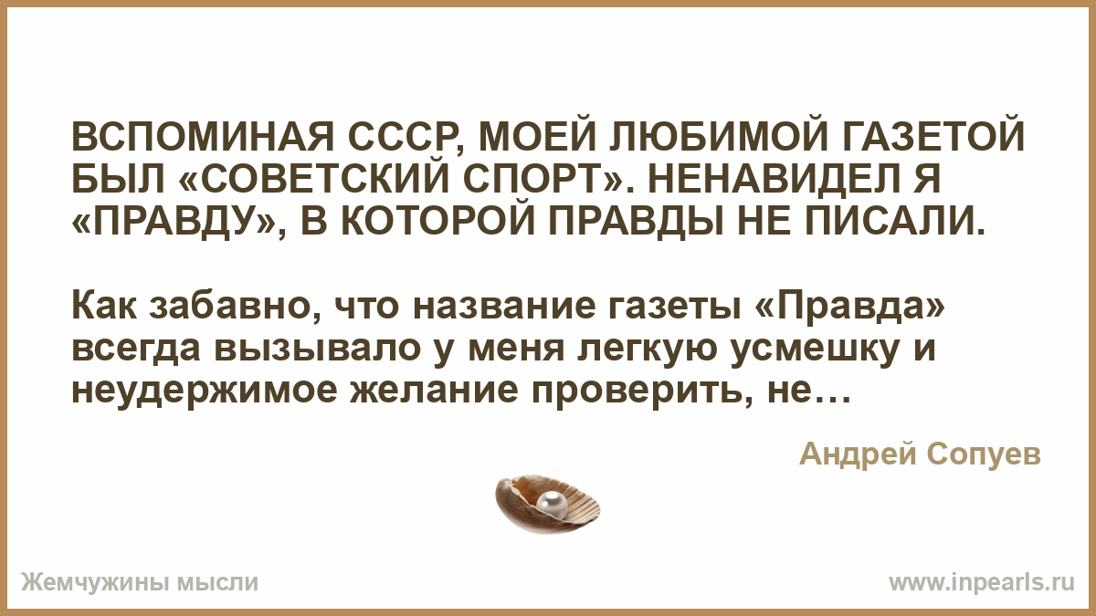 ВСПОМИНАЯ СССР, МОЕЙ ЛЮБИМОЙ ГАЗЕТОЙ БЫЛ «СОВЕТСКИЙ СПОРТ». НЕНАВИДЕЛ Я «ПРАВДУ», В КОТОРОЙ ПРАВДЫ НЕ ПИСАЛИ.