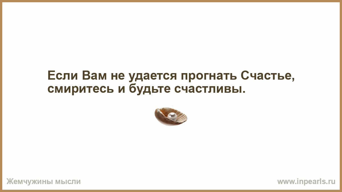 Если Вам не удается прогнать Счастье, смиритесь и будьте счастливы.