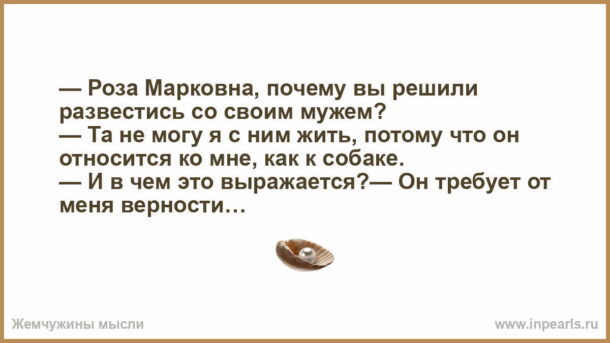 — Роза Марковна, почему вы решили развестись со своим мужем?