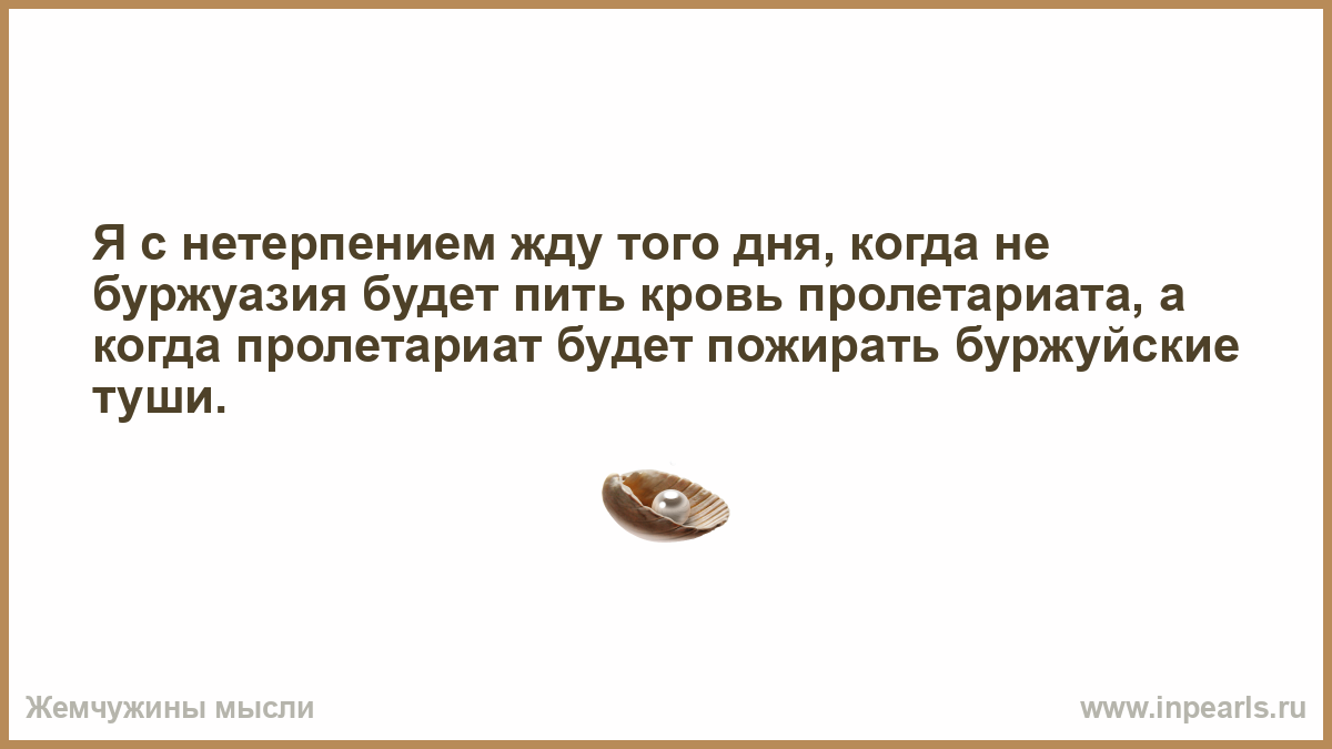 Я с нетерпением жду того дня, когда не буржуазия будет пить кровь пролетариата, а когда пролетариат будет пожирать буржуйские туши.