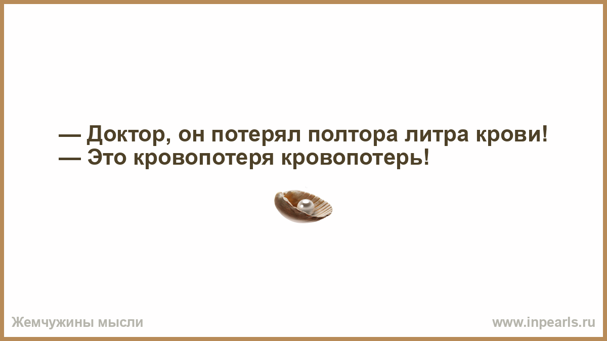 — Доктор, он потерял полтора литра крови! — Это кровопотеря кровопотерь!