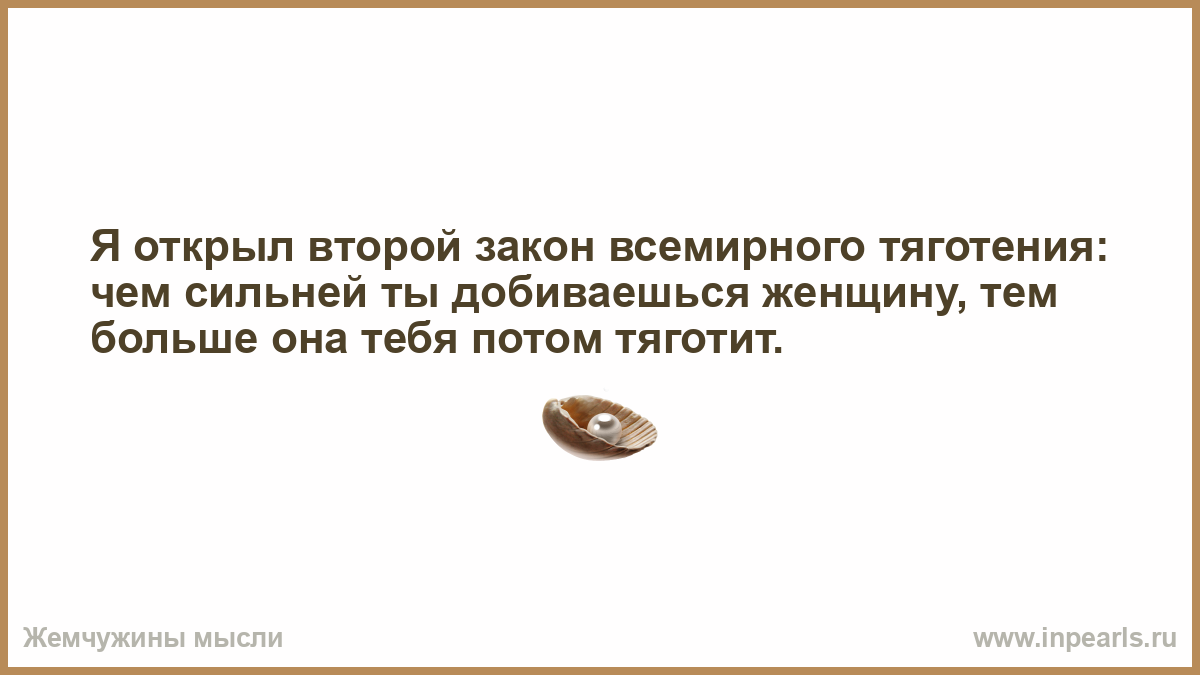 Я открыл второй закон всемирного тяготения: чем сильней ты добиваешься женщину, тем больше она тебя потом тяготит.