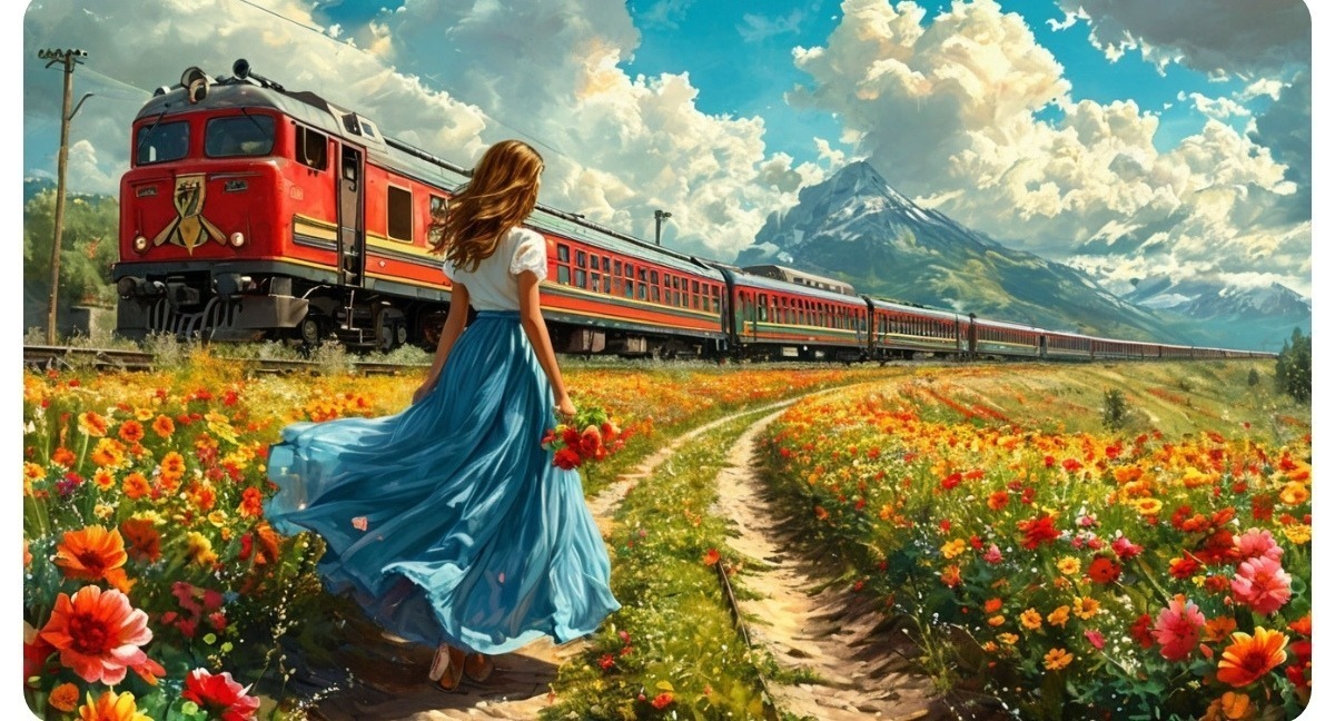 Каждый день с букетом цветов я встречаю проходящие поезда, жду тебя.
