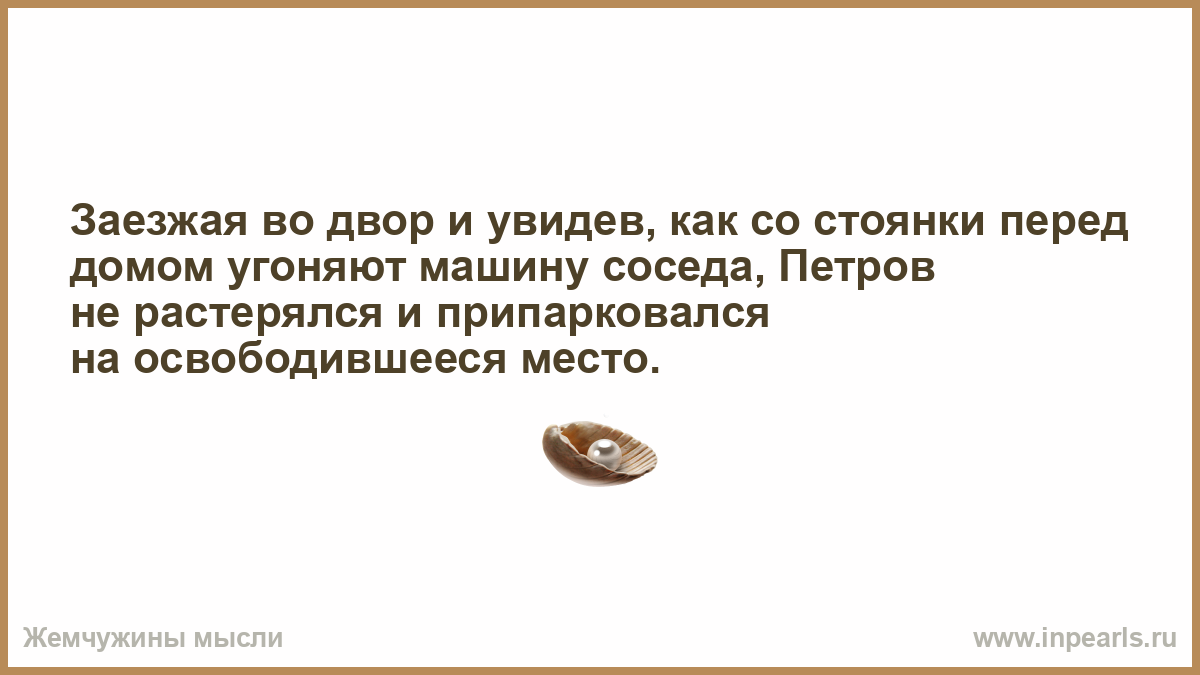 Заезжая во двор и увидев, как со стоянки перед домом угоняют машину соседа, Петров не растерялся и припарковался на освободившееся место.