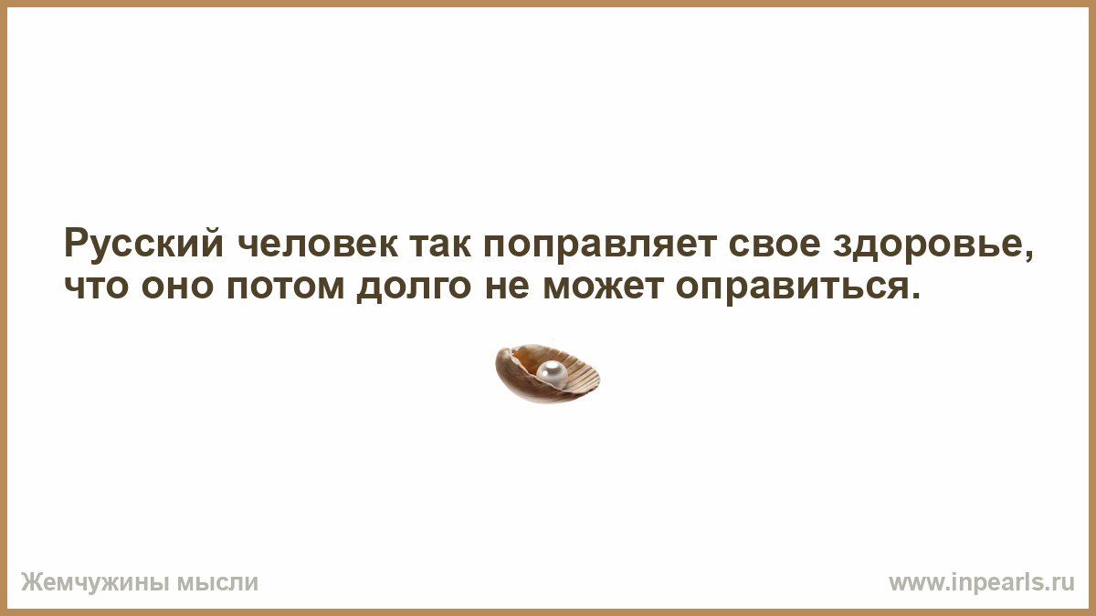 Русский человек так поправляет свое здоровье, что оно потом долго не может оправиться.