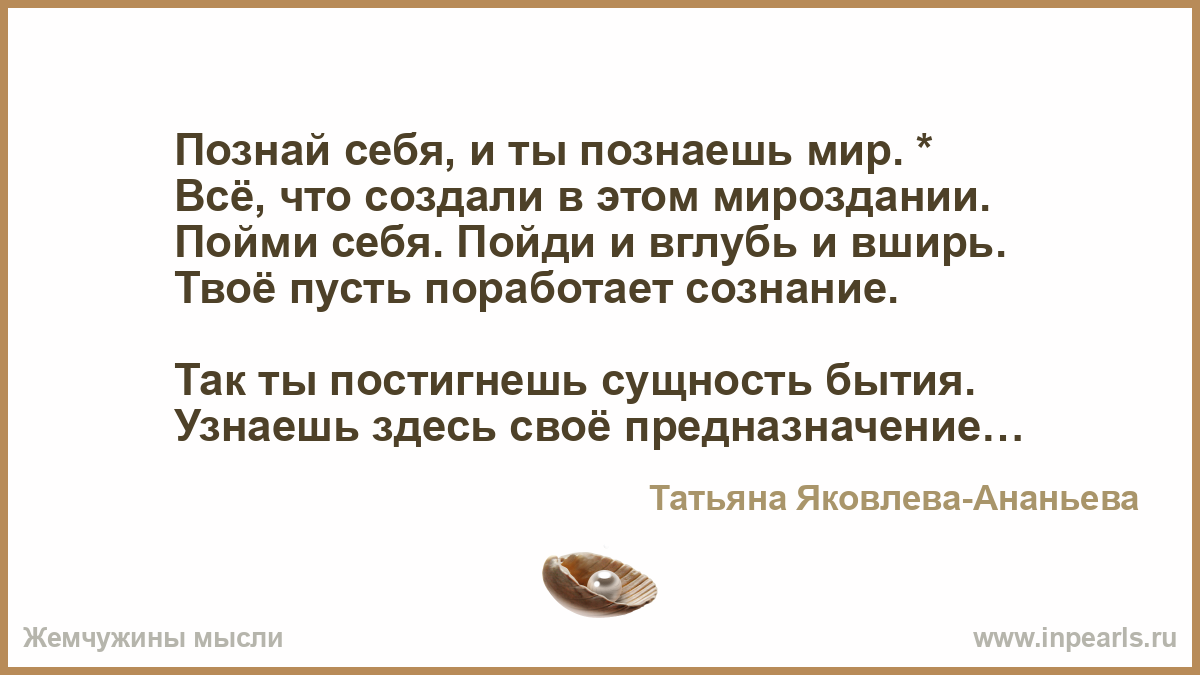 *"Познай самого себя и ты познаешь весь мир» — античный афоризм, приписываемый Семи мудрецам. Одна из самых важных Дельфийских максим — надписей на стене древнегреческого храма Аполлона в Дельфах, где находился Дельфийский оракул.