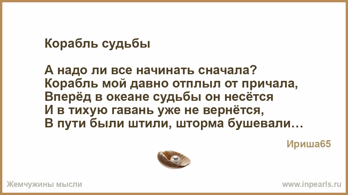 Корабль мой идет по маршруту судьбы,