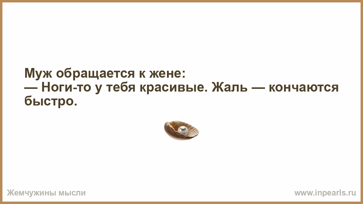 Муж обращается к жене: — Ноги-то у тебя красивые. Жаль — кончаются быстро.