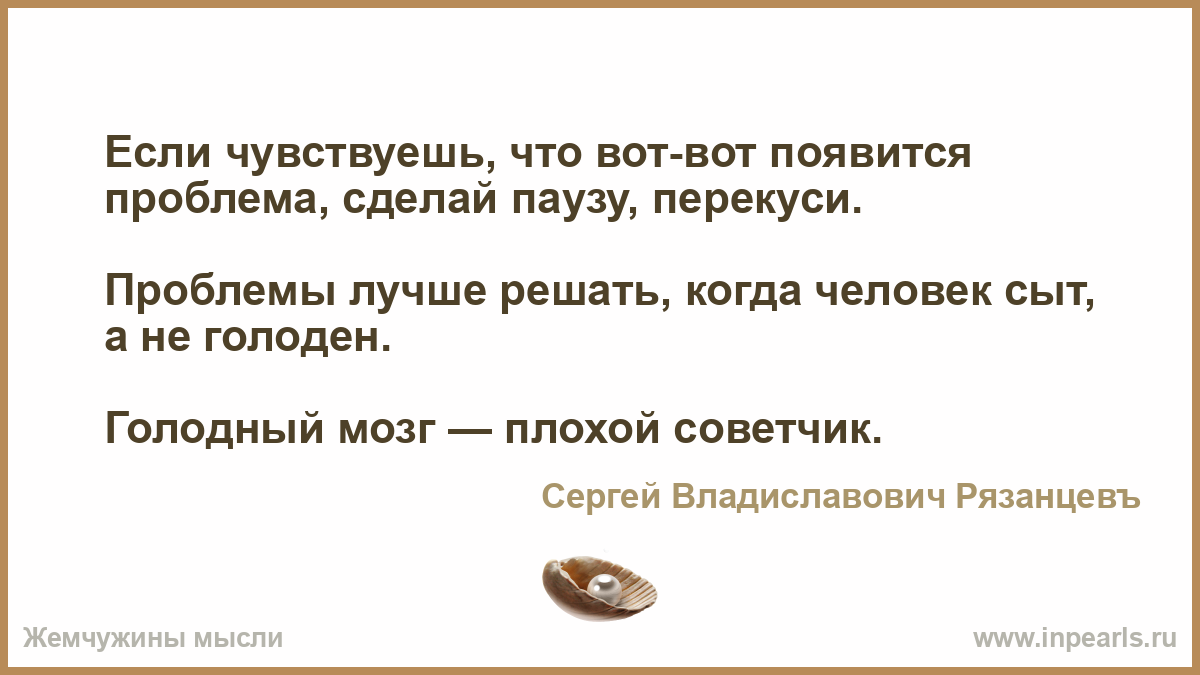Проблемы лучше решать, когда человек сыт, а не голоден.