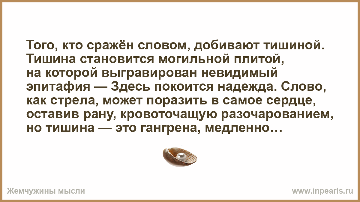 Того, кто сражён словом, добивают тишиной. Тишина становится могильной плитой, на которой выгравирован невидимый эпитафия — Здесь покоится надежда. Слово, как стрела, может поразить в самое сердце, оставив рану, кровоточащую разочарованием, но тишина — это гангрена, медленно пожирающая душу, лишая её жизненной силы.