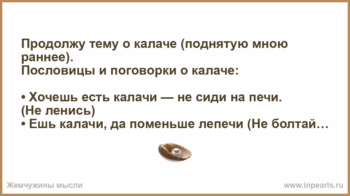 • Ешь калачи, да поменьше лепечи (Не болтай ерунду во время тРАпезы).