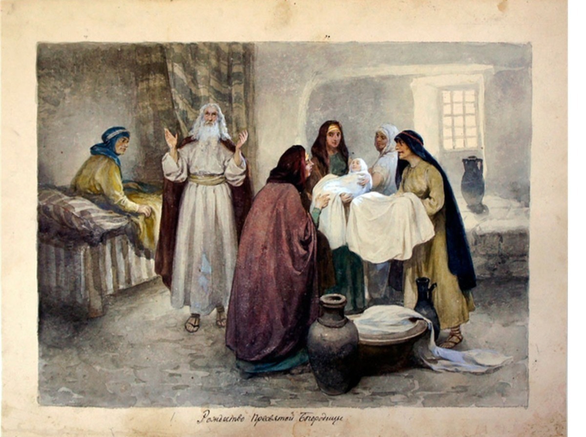 Русский художник Клавдий Васильевич Лебедев (1862−1916) создал множество картин на библейские сюжеты, одна из них «Рождество Пресвятой Богородицы».