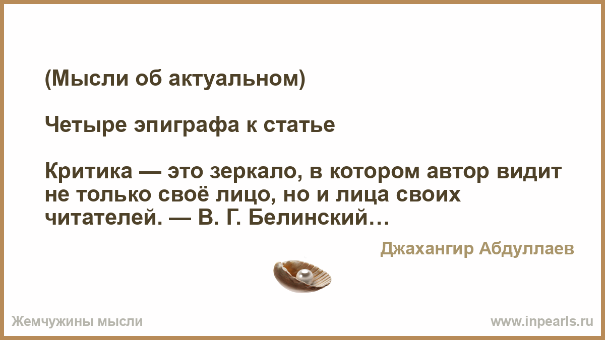 Критика — это зеркало, в котором автор видит не только своё лицо, но и лица своих читателей. — В. Г. Белинский