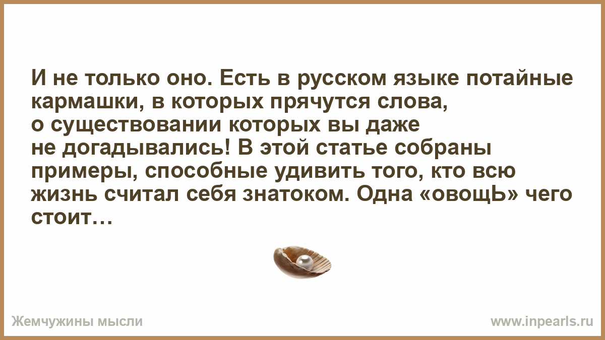 И не только оно. Есть в русском языке потайные кармашки, в которых прячутся слова, о существовании которых вы даже не догадывались! В этой статье собраны примеры, способные удивить того, кто всю жизнь считал себя знатоком. Одна «овощЬ» чего стоит!