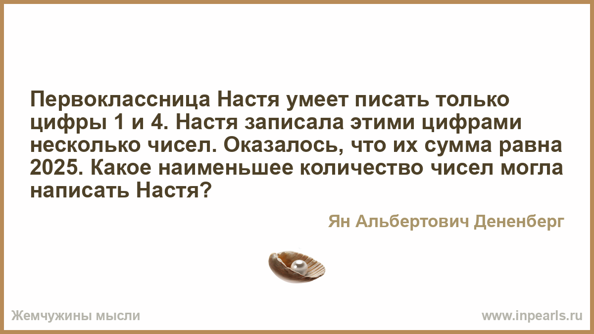 Первоклассница Настя умеет писать только цифры 1 и 4. Настя записала этими цифрами несколько чисел. Оказалось, что их сумма равна 2025. Какое наименьшее количество чисел могла написать Настя?