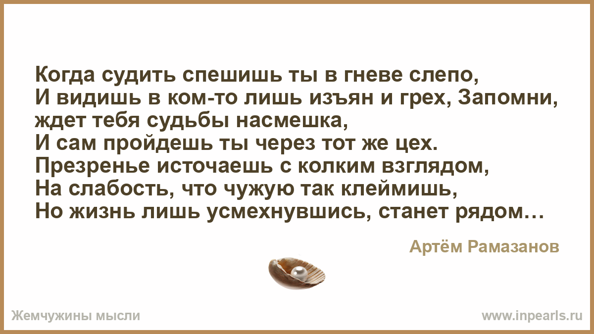 И видишь в ком-то лишь изъян и грех, Запомни, ждет тебя судьбы насмешка,