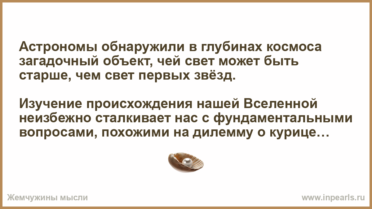 Астрономы обнаружили в глубинах космоса загадочный объект, чей свет может быть старше, чем свет первых звёзд.