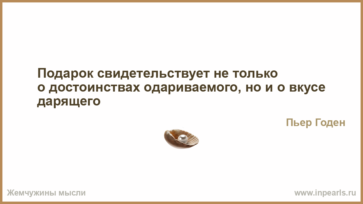 Подарок свидетельствует не только о достоинствах одариваемого, но и о вкусе дарящего