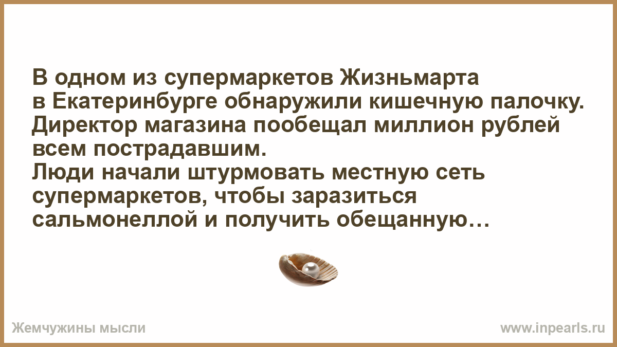 В одном из супермаркетов Жизньмарта в Екатеринбурге обнаружили кишечную палочку. Директор магазина пообещал миллион рублей всем пострадавшим.