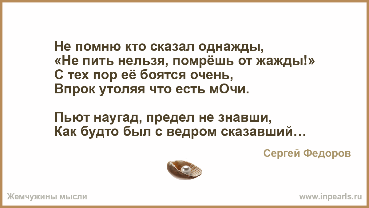 «Не пить нельзя, помрёшь от жажды!»
