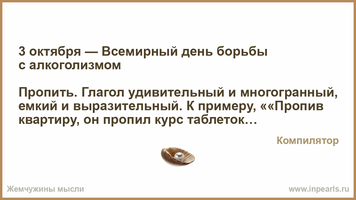 А еще можно пропить наследство и пропить мозги, пропить честь и пропить здоровье, пропить молодость и пропить будущее…