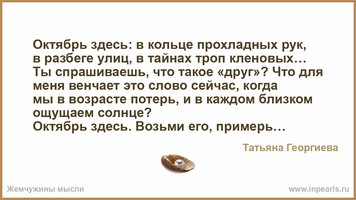 Октябрь здесь. Возьми его, примерь, он синеглаз и мудр, звенит и льётся.