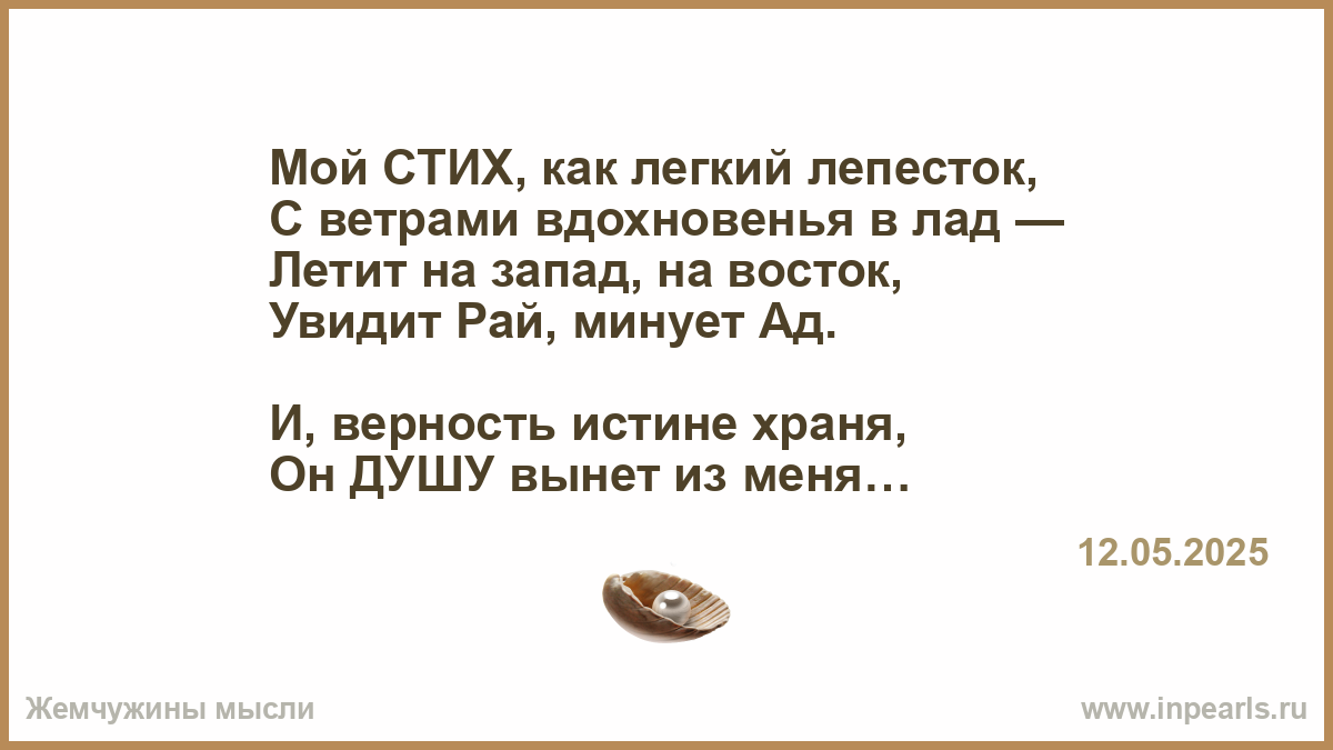 Ты не считай друзей на пересчет! Не тот твой друг, кем любопытство движет, а тот, кто с радостью с тобой разделит взлёт… и кто в беде… твой тихий плач… услышит…