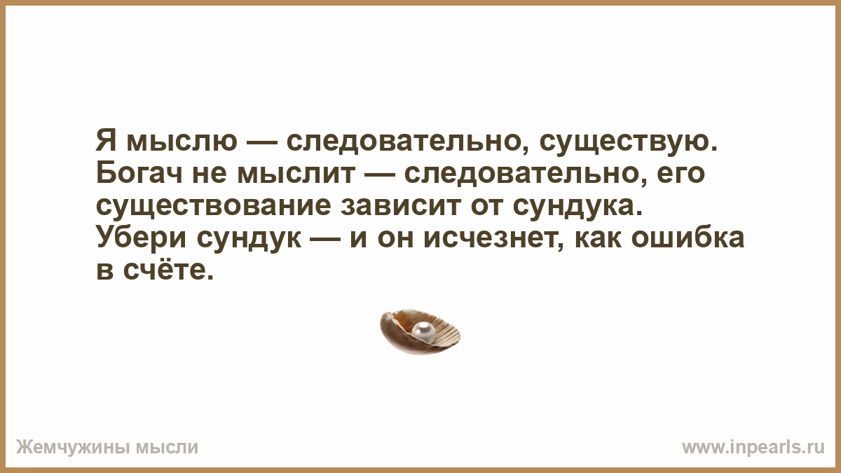 Богач не мыслит — следовательно, его существование зависит от сундука.