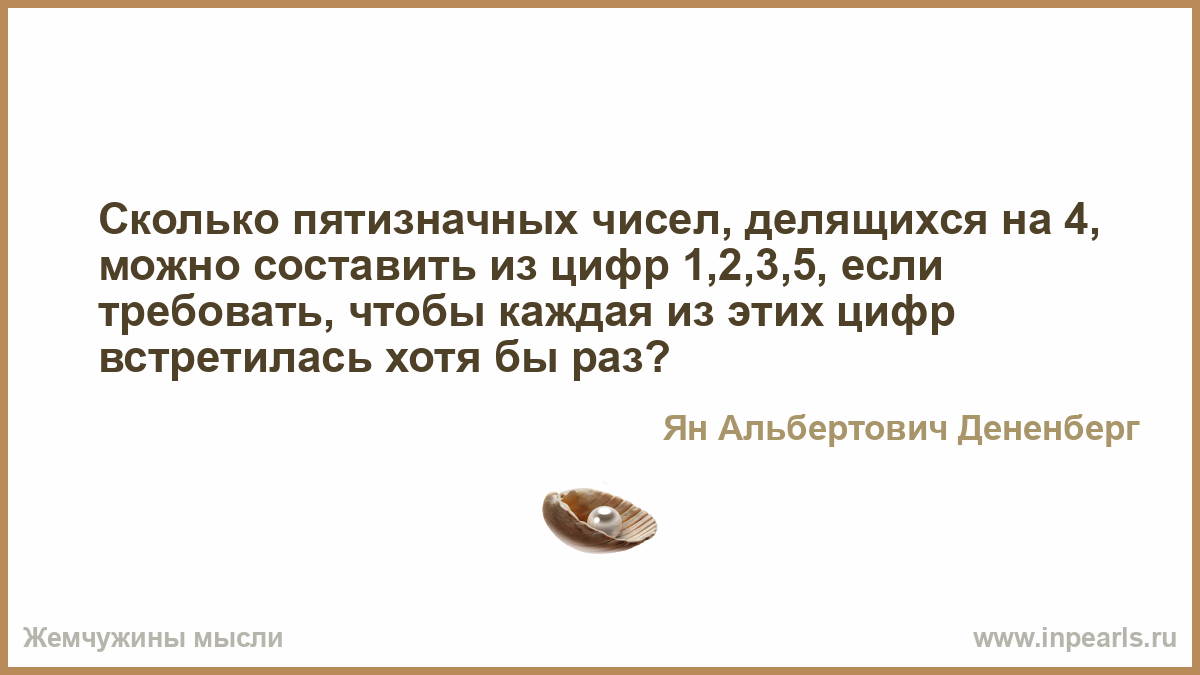 Сколько пятизначных чисел, делящихся на 4, можно составить из цифр 1,2,3,5, если требовать, чтобы каждая из этих цифр встретилась хотя бы раз?