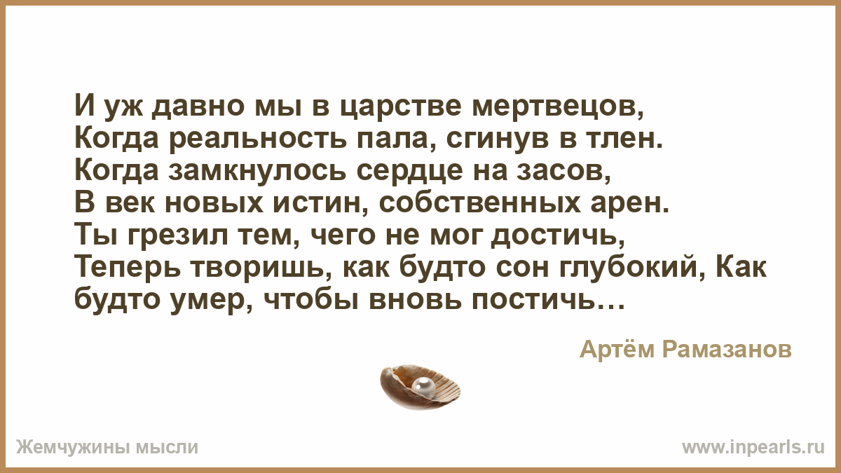 Теперь творишь, как будто сон глубокий, Как будто умер, чтобы вновь постичь,
