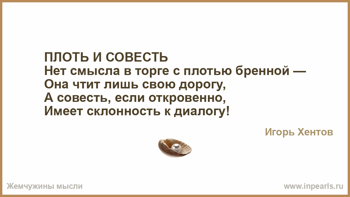 Мысль целит в суть, как око в прорезь, И, как верёвочке не виться, Чем меньше человечья совесть, Тем проще с ней договориться.