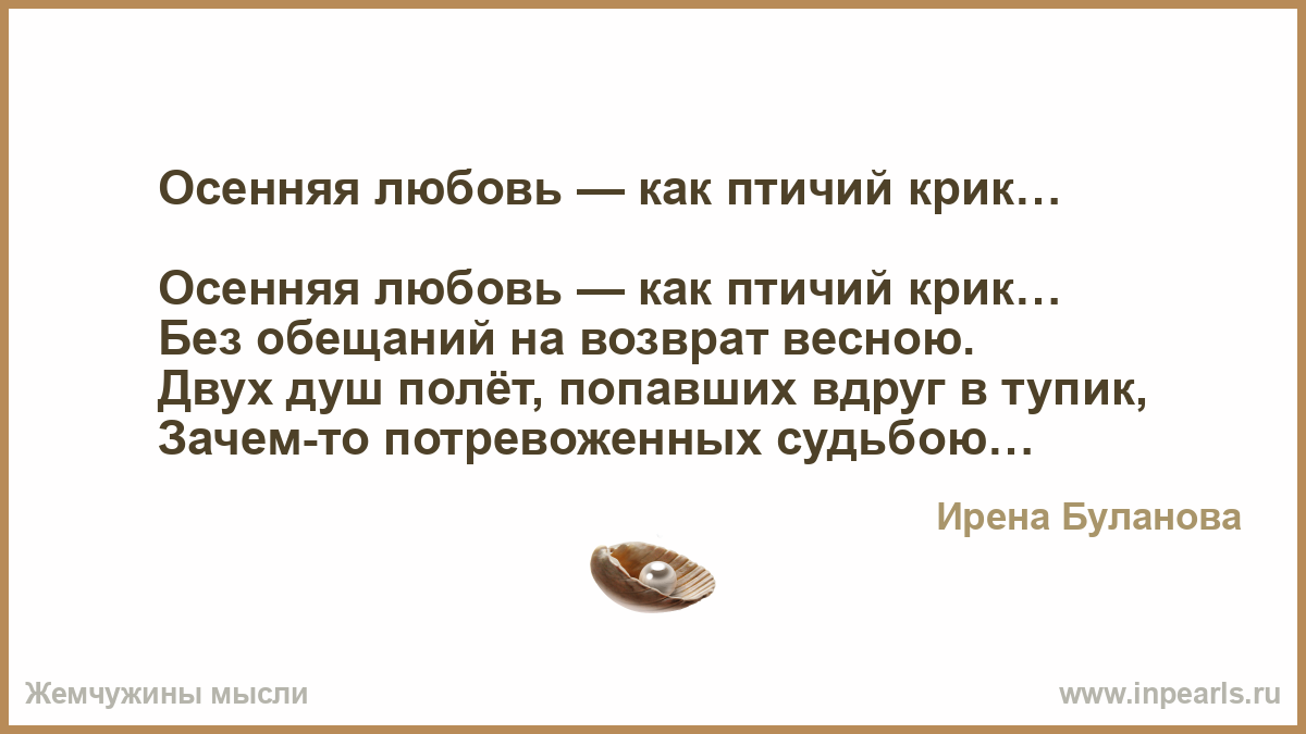 Осенняя любовь — как птичий крик…