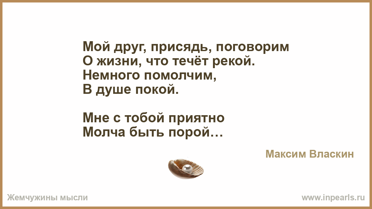 Своих друзей не выбираю, а полагаюсь лишь на сердце. Я в душу дверь не закрываю,. Впущу, кто захотел согреться. Кто появился без корысти, без кривотолков и без злобы… С открытою душою чистой. Со словом искренним и добрым!