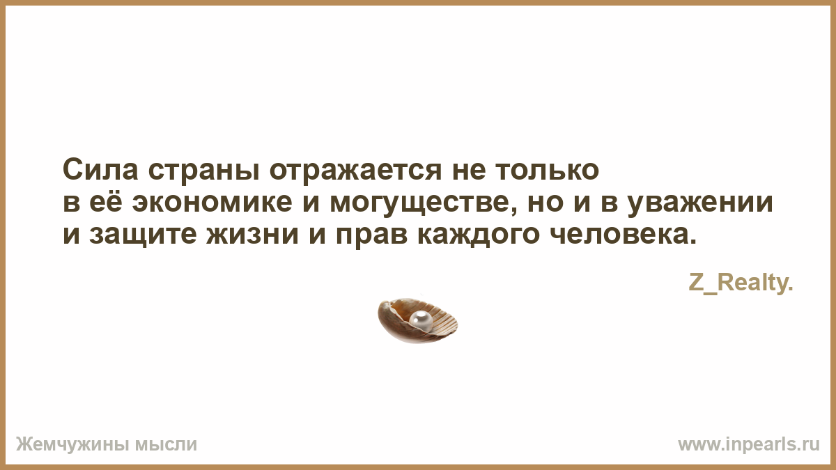 Сила страны отражается не только в её экономике и могуществе, но и в уважении и защите жизни и прав каждого человека.