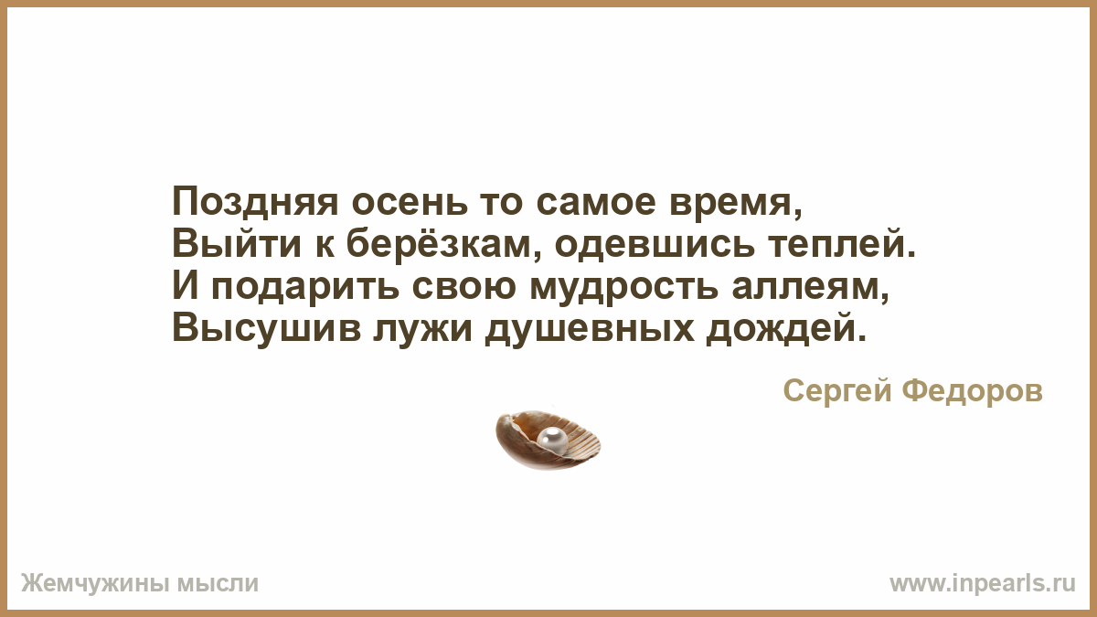 Пока есть зачем — встречайтесь, Если есть куда — стремитесь, И почаще улыбаясь, На судьбу… поменьше злитесь.